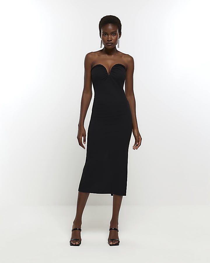 Product Name: Black plunge midi dress online