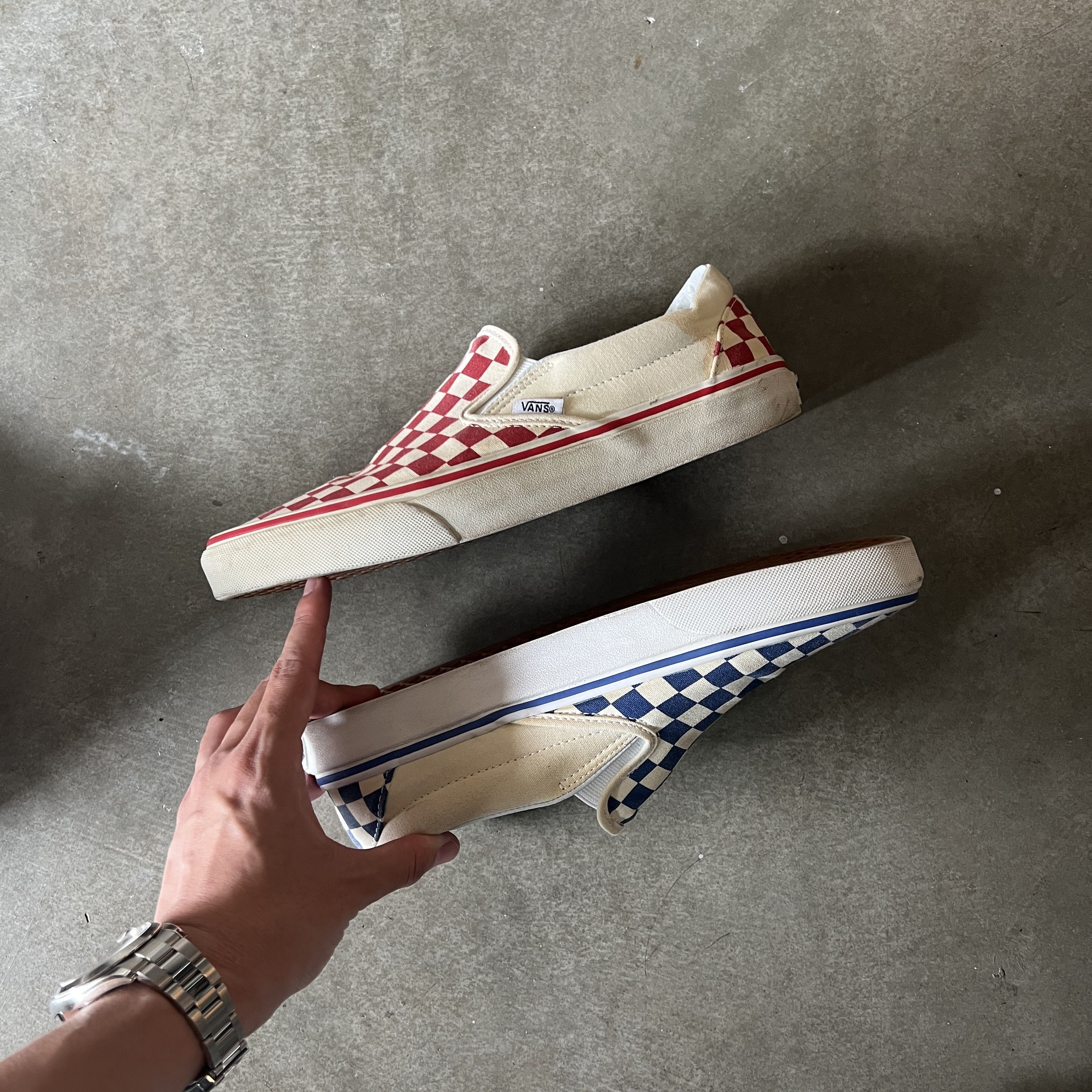 Product Name: Red and blue slip on vans online