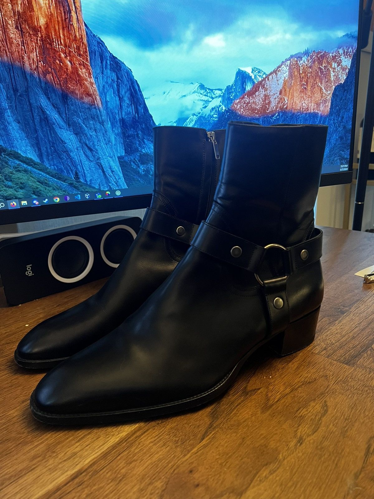 Product Name: Saint laurent black wyatt harness boots online