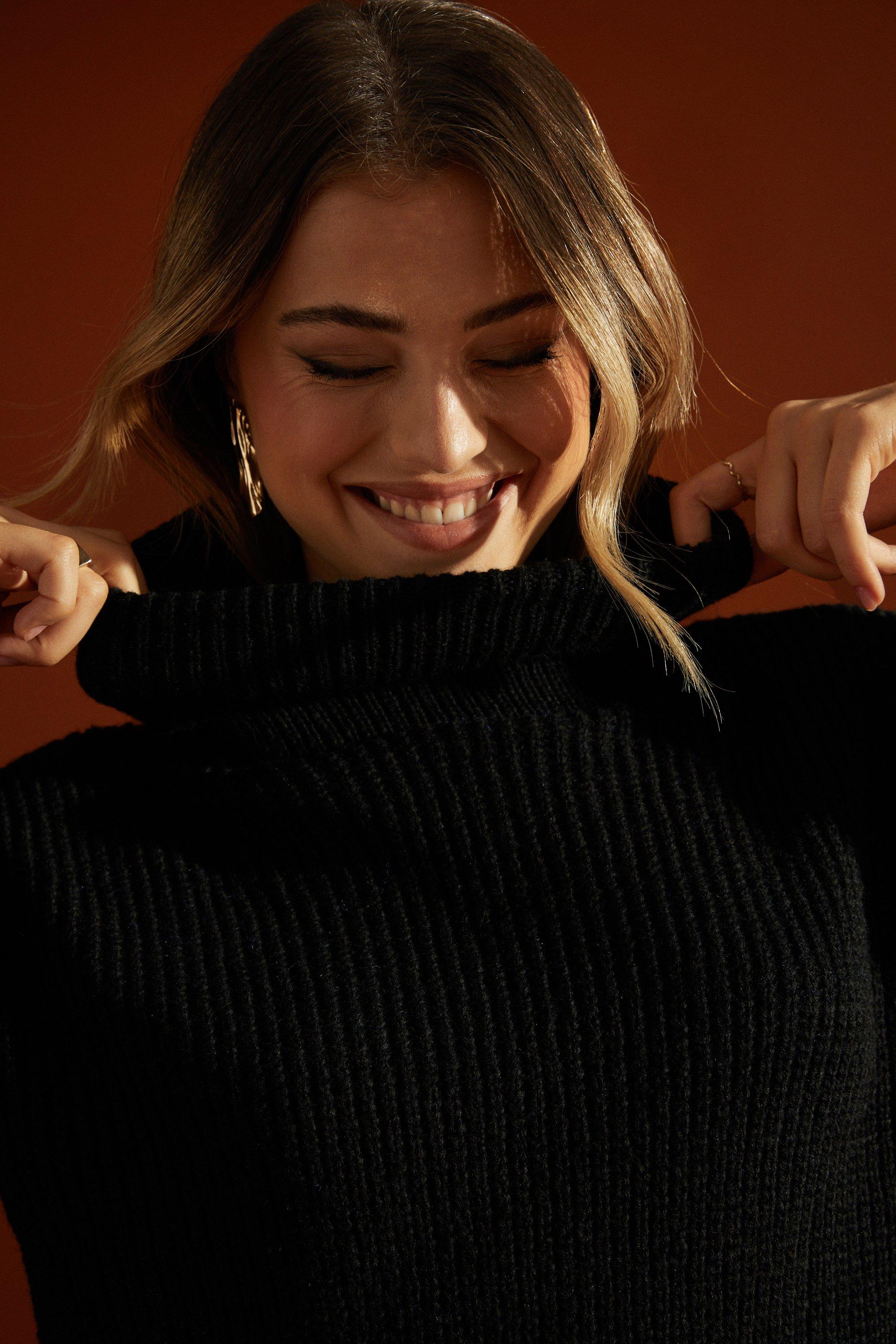 Product Name: Black roll neck chunky jumper online